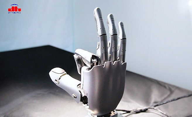 大寰机器人灵巧手模仿人手构造,采用高度集成化设计,整手有6个通过微型电缸驱动的主动自由度,并通过连杆实现11个自由度。另外DH-5在手指末端加装力传感器,可实时反馈手指抓取力的信息。整体重量约700g,手掌骨架采用7系铝合金制作,外壳采用工程塑料材质,拥有更轻的重量与精致的外观。