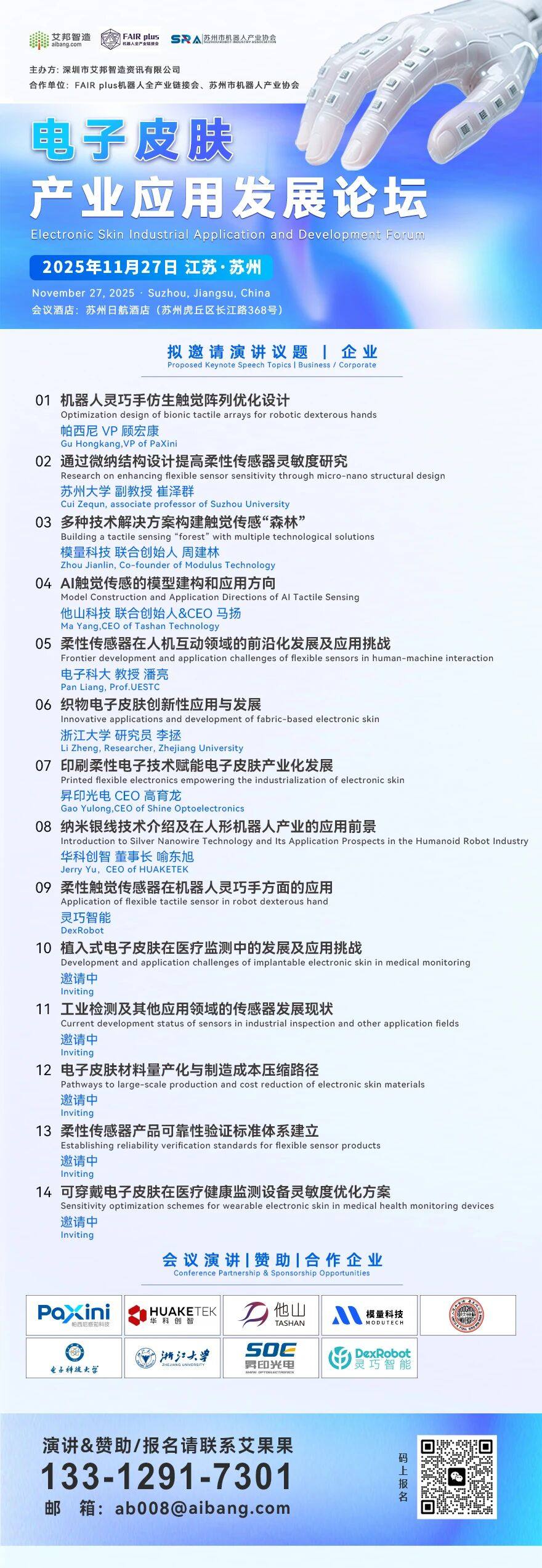 电子皮肤产业应用发展论坛(11月27日 苏州)