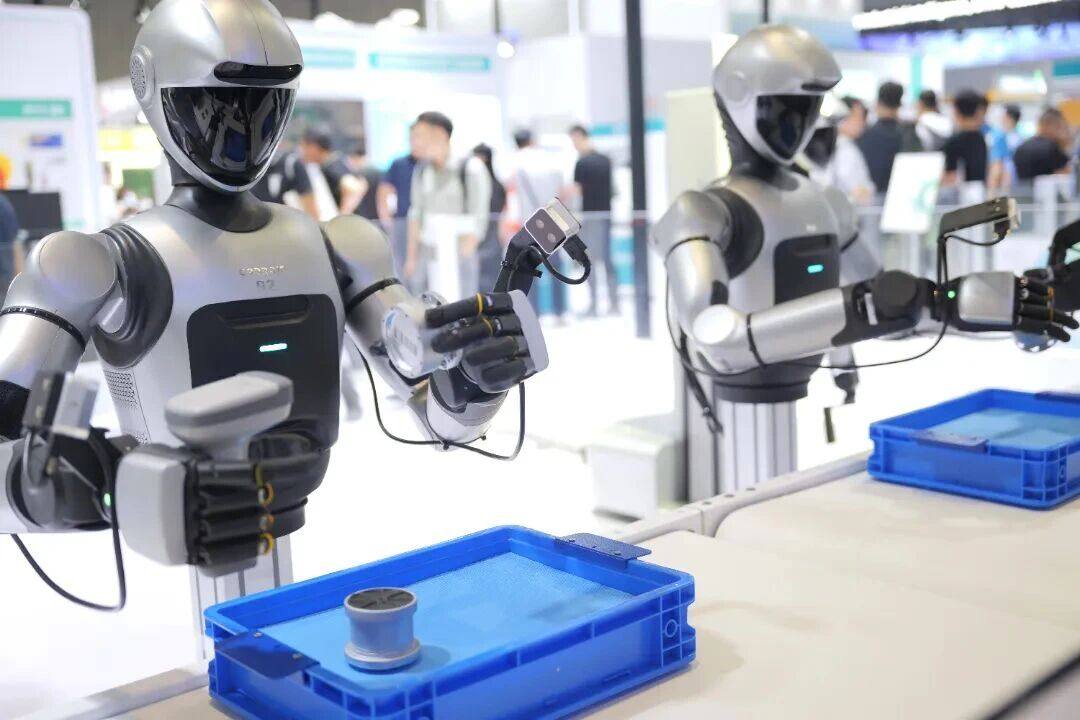 在2025年上海工博会上,埃斯顿酷卓以“具身智能·智领未来”为主题,展示了以“快慢系统”协同架构为核心的具身智能机器人工业应用落地解决方案。该方案集成了双臂人形机器人、轮式人形机器人、协作机器人、PLC 控制以及智能化算法,完整演示了从工件上料、扫码、装配到智能搬运的具身智能多形态、复杂任务应用落地全流程。