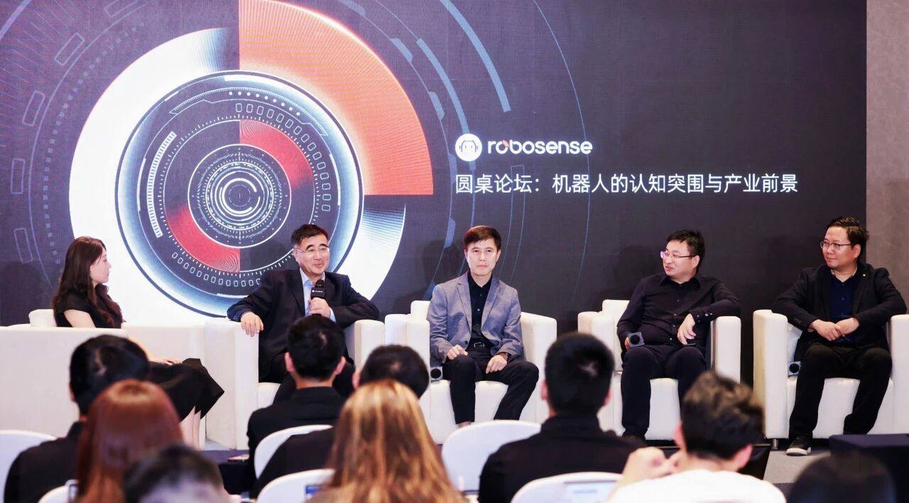 RoboSense创新事业部总裁王鹏分享了机器人之眼的行业趋势与领先技术突破,激光雷达事业部副总裁杨先声博士全面介绍了AC2的性能优势与亮点特性。圆桌论坛环节,孙富春、朱延河、李清都、李淼四位学者聚焦“机器人的认知突围与产业前景”主题展开前沿探讨。