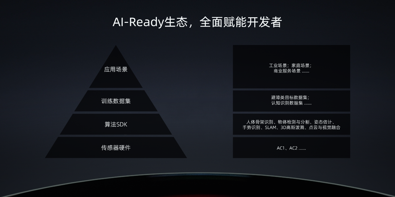 AC2协同AI-Ready生态,将解决目前机器人传感器堆叠及重复开发问题,成为机器人操作应用的最佳感知方案。在工业、物流、家庭服务机器人等成熟领域,AC2可加速其商业化发展节奏,提升操作效率,解锁更多应用场景;在具身智能机器人、数字孪生等高潜发展领域,AC2将推动其功能验证及应用落地,释放更多想象。