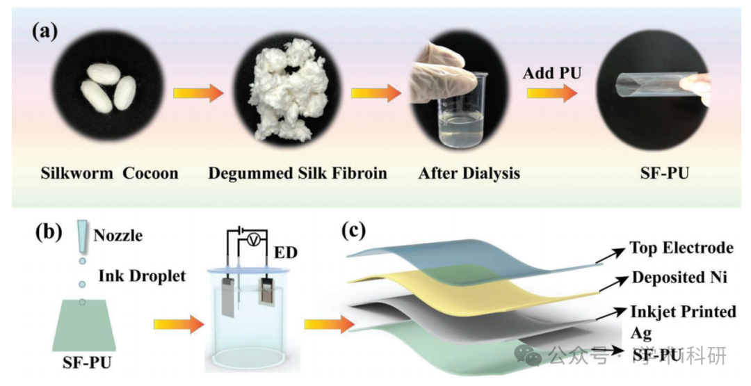 基于喷墨印刷和电沉积(IJ-ED)技术在SF-PU膜上制备柔性PPES的方案