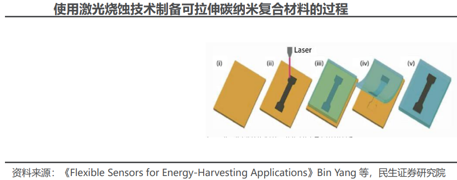 电子皮肤的核心是使用先进的电子和材料科学技术来制造出能够感知环境变化的灵敏表面,激光剥离技术是发展柔性传感器的重要技术之一。例如,利用激光剥离技术可以从商用聚酰亚胺薄膜制造 LIG 基盐度传感器,用于检测不同天然水体中的盐分浓度,这种传感器可以作为电子皮肤的一部分,赋予电子皮肤感知环境中盐分浓度等信息的能力。