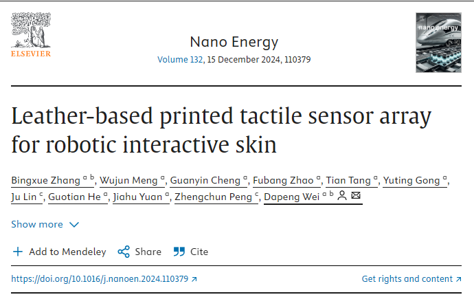 近年来,电子皮肤作为新兴的柔性传感器件,具有仿皮肤的结构和功能,在健康医疗、触觉反馈仿生电子、机器人等领域具有重要应用价值。电子皮肤在机器人触觉感知方面的作用尤为关键,搭建了人-机-物交互的桥梁,通过独特的触觉通道赋予机器人更丰富的感知能力,在提高人机交互的舒适性和安全性方面展现出潜力。