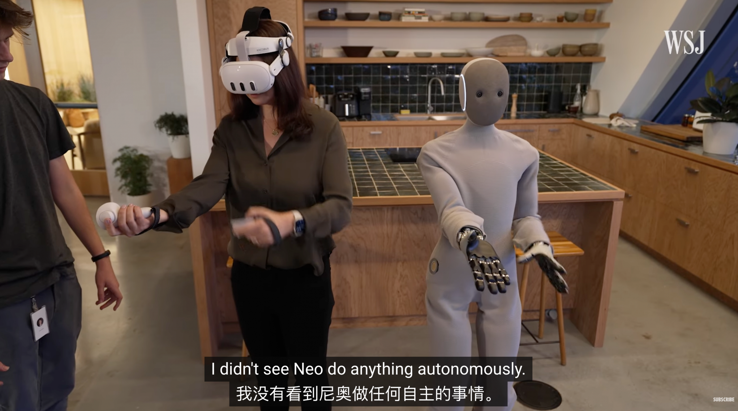 《华尔街日报》的记者在体验时,让 Neo 去冰箱拿瓶水。它能走过去,但打不开门,于是需要远程人类接管操作,这瓶水最终花了一分钟才拿到手。