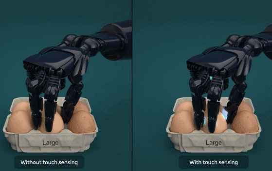 例如,搭配视触觉传感器的灵巧手能稳定抓取鸡蛋类易碎物,并通过实时反馈调整抓取策略,接近人类手指的灵敏度和适应性。