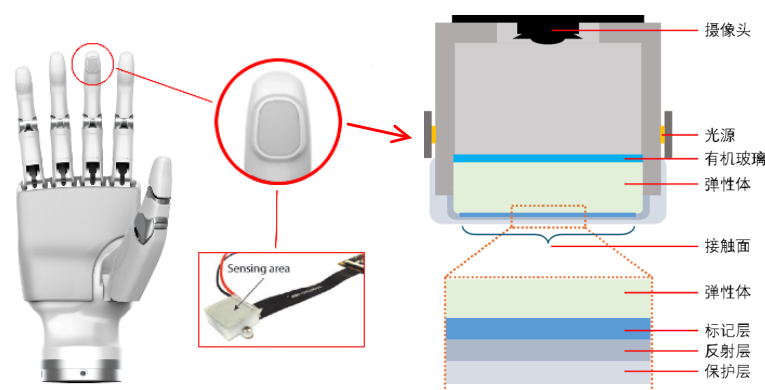 (1)、视触觉技术是一种融合光学成像与触觉感知的传感方法,其核心原理是通过捕捉弹性材料与物体接触时的微观形变,将其转化为高分辨率触觉信息。视触觉传感器的原理是用摄像头拍下弹性材料接触物体时的细微形变,再把这些变化转化成高清的“触觉照片”,通过摄像头观察柔软层的形变来“感受力量、纹理和滑动”。与传统按压传感器不同,触觉传感器能同时“感受”物体的软硬、纹理甚至滑动趋势。这种高保真的触觉信息,能帮机器人更精准地“理解”物体特性,像人类一样完成精细操作。