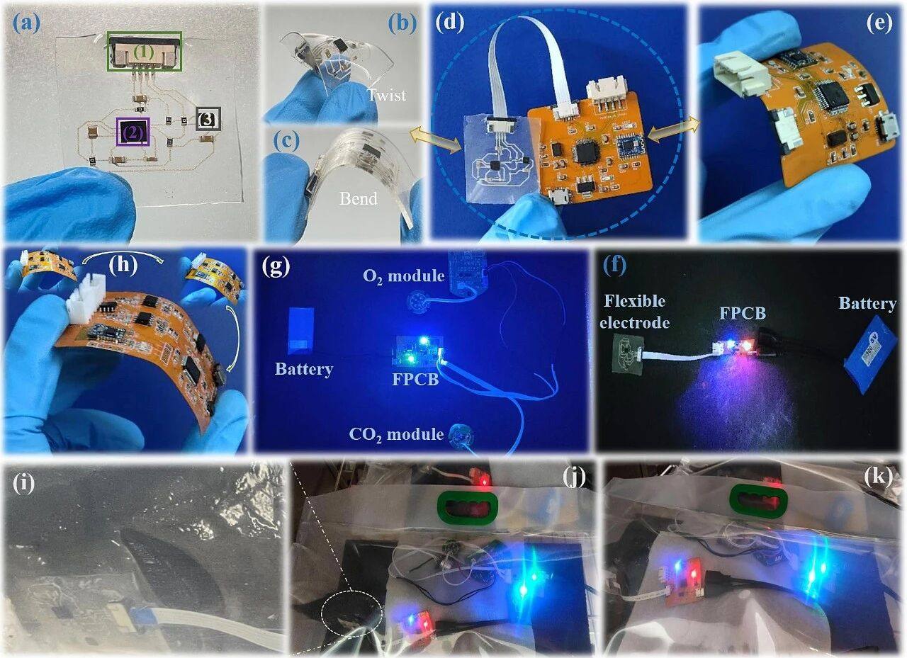 (2)非接触式传感系统集成于 FPCB 板,实现含氧袋内氧气、二氧化碳浓度的无损收集。