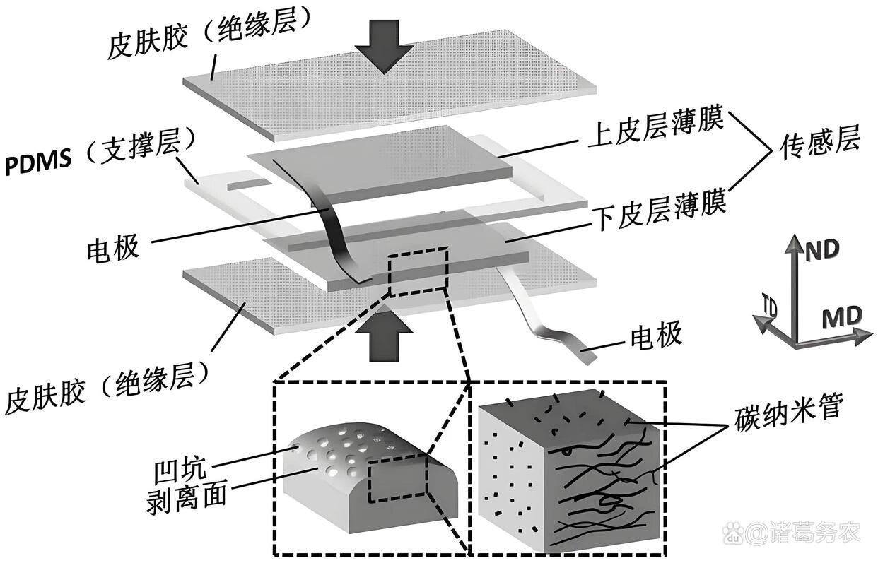 PDMS结合导电填料形成的压阻复合材料是电子皮肤触觉感知的核心。其工作原理基于在外力作用下材料变形导致内部导电网络变化,进而引起电阻改变。
