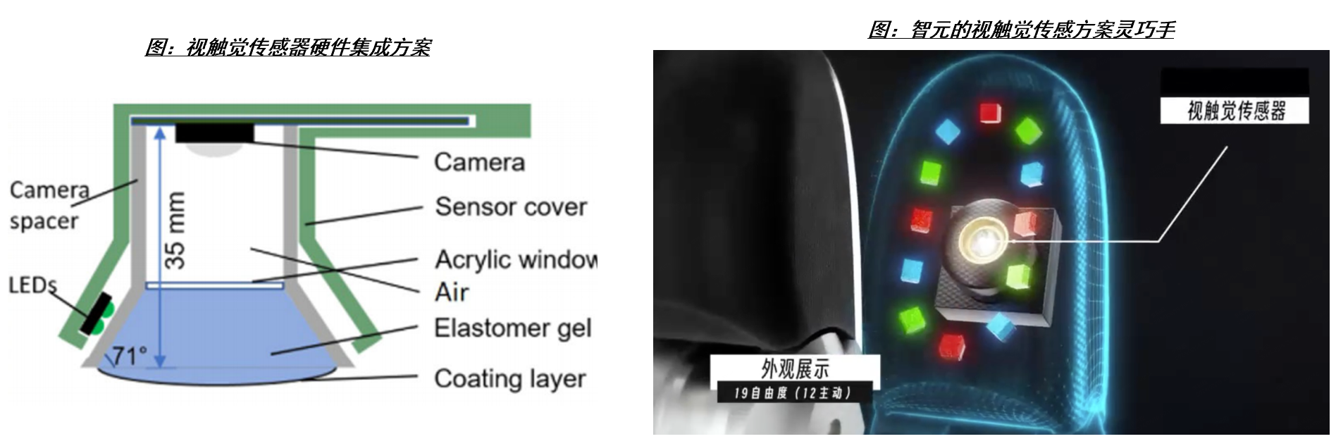 目前采用该方案的灵巧手制造商有戴盟和智元机器人等。智元机器人视触觉感知方案:采用MEMS触觉感知+视触觉感知技术,触觉感知技术可以反馈物体接触的压力、形状、纹理等信息。