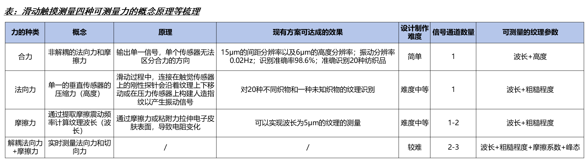 资料来源:Longteng Yu等《Recent Progress in Tactile Sensing and Machine Learning for Texture Perception in Humanoid Robotics》