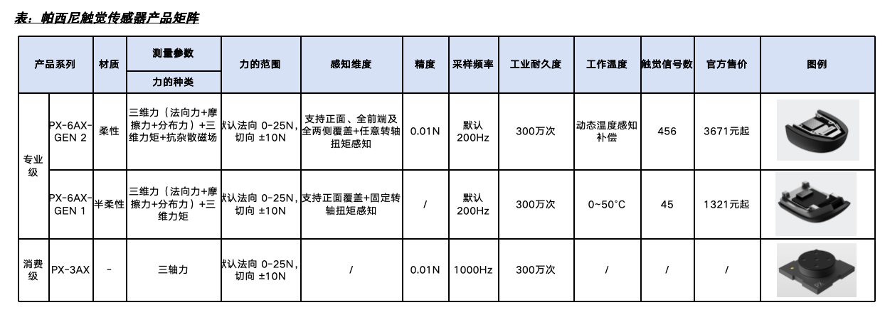 ITPU多维度触觉传感技术:帕西尼自主研发的多维度触觉传感技术,为机器人提供易用且丰富的触觉信息,进行毫秒级决策和复杂场景中的精准柔性操控。