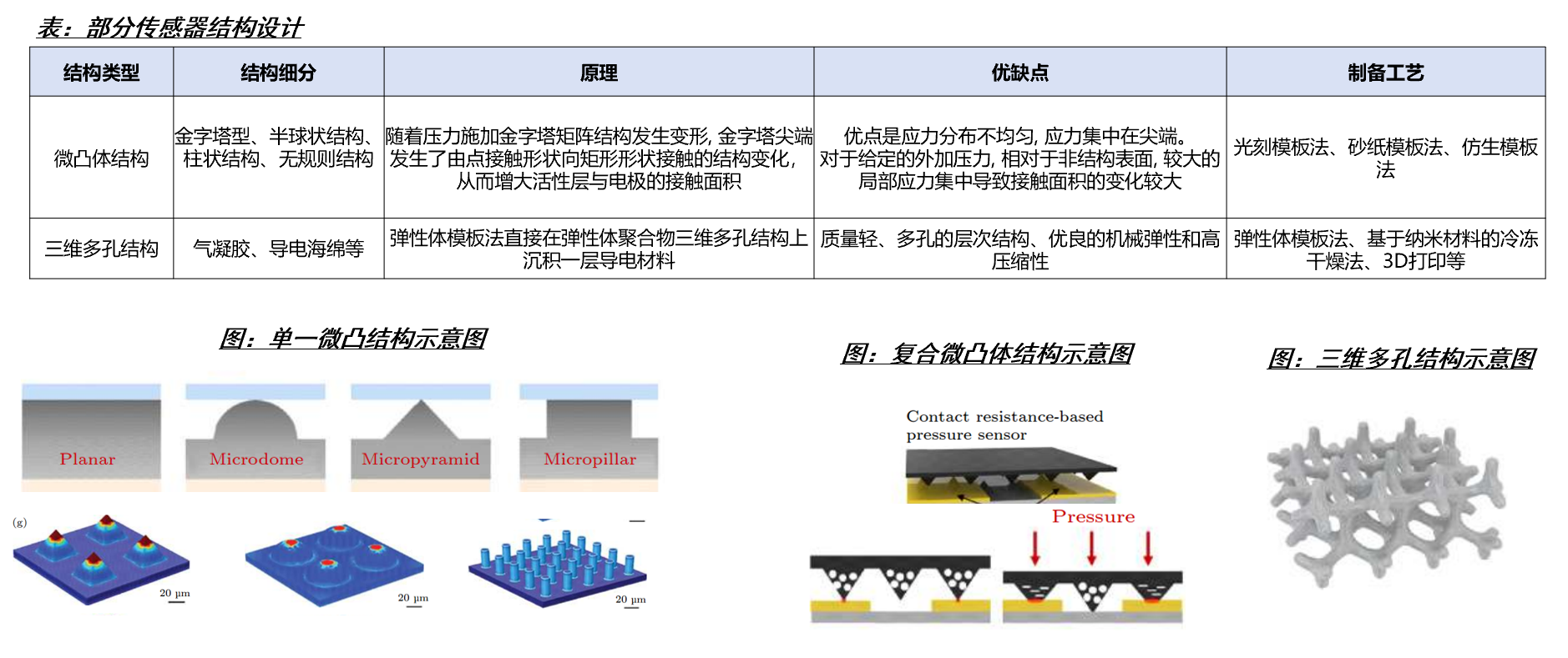 资料来源:孙富钦等《柔性仿生触觉感知技术:从电子皮肤传感器到神经拟态仿生触觉感知系统》,李凤超等《柔性压阻式压力传感器的研究进展》,国海证券研究所