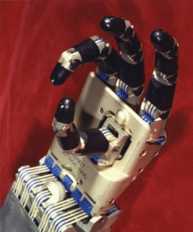 1983年由斯坦福大学和美国喷气推进实验室联合推出的Stanford/JPL手是一个巨大技术突破。与以往直接用电机驱动不同,它采用了腱驱动的方式。腱驱动就像人类肌肉通过肌腱带动骨头一样,用绳索或钢丝把电机的动力传递到关节。这让机械手的体积更小、动作更灵活。而它指尖上的触觉传感器,可以感知接触的力量,防止破坏物品或空抓一场。Stanford/JPL手不仅能抓住物体,还能在手里转动或挪动它,带来一丝“灵巧”的曙光。