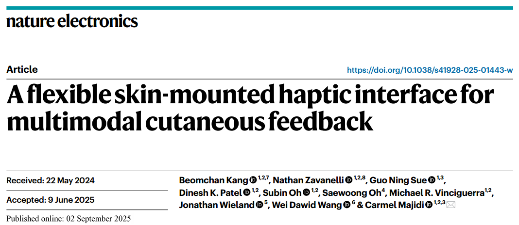 Kang, B. et al. A flexible skin-mounted haptic interface for multimodal cutaneous feedback. Nat Electron 1–13 (2025) doi:10.1038/s41928-025-01443-w