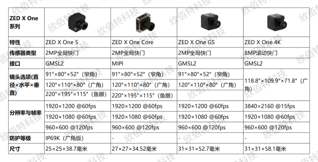 ZED X One 系列通过不同形态与接口设计,覆盖从高防护移动平台到深度嵌入式系统的全场景需求。下表汇总了当前全系产品的关键参数,便于根据空间、环境、分辨率和集成方式做出合理匹配: