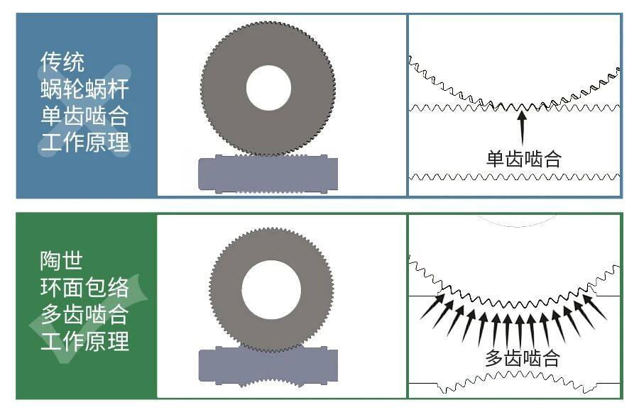 从劣势角度看优势,陶世自研的环面包络技术直击传统蜗杆的三大“软肋”。用“多齿啮合”解决了承载与效率、改善了精度与背隙等问题,同时完全保留了蜗轮蜗杆传动的核心功能——物理自锁能力。