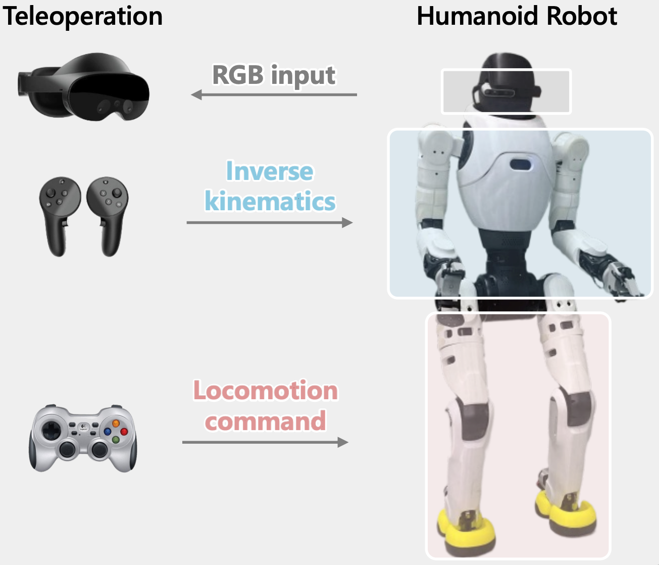决策层-数据困境:相比原地操作,人形机器人在移动操作任务中的数据采集要“贵”得多。往往需要不止一个数采员同时遥操机器人上半身进行操作、下半身完成行走,这通常只能通过混合方案实现(例如 VR 控制上半身、遥控器控制下半身),这种方式操作流程长、效率低;或者使用全身动捕系统,但价格高昂。再加上人形机器人本身的硬件成本居高不下,使得真机数据难以scale-up,从而让依赖大量真机数据学习操作任务先验知识的 VLA 范式,在人形机器人移动操作场景中变得尤为困难。