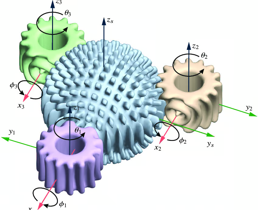 然而,传统直齿轮和斜齿轮存在本质性的运动约束。直齿轮只能实现平行轴间的运动传递,而斜齿轮虽然可以处理相交轴传动,但其运动仍局限于单一平面内的旋转。这种单自由度传动的限制源于齿轮副的刚性约束特性:两个啮合齿轮之间只能产生一个相对旋转自由度,其他五个自由度均被完全约束。
