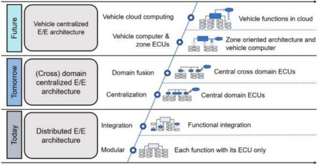 这一演进路径清晰地反映出汽车电子架构从“域划分”向“中央计算平台”过渡的趋势。