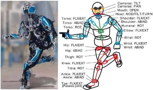6. SARCOS biped humanoid robot developed by NICT/ATR. (a) Hardware. (b)... | Download Scientific Diagram