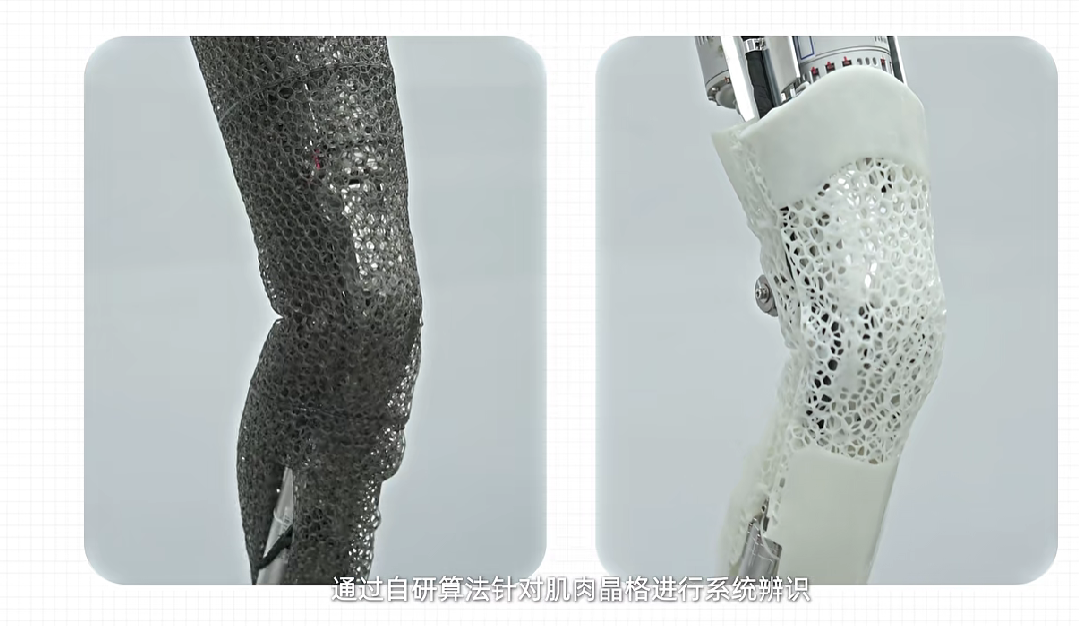 针对晶格皮肤与仿生肌肉可能带来的动力学干扰,小鹏机器人通过大量动力学数据采集,自研算法对肌肉间隔进行系统辨识,并对晶格结构进行算法优化与参数精确标定,使复杂结构的动力学仿真成为可能。即便在运行状态下移除皮肤与肌肉、导致动力学特性发生变化,IRON 依然能够依靠训练完成的 AI 模型快速适应环境,维持稳定行走。