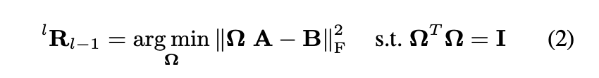 其中,旋转矩阵lRl−1通过求解正交普罗克拉斯问题确定: