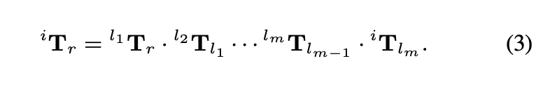 计算机器人连杆j上皮肤单元i的正运动学,即所有l≤j的lT0(q);
