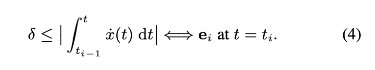 该积分本质上是对输入信号变化量ẋ(t)的算术平均,因此事件生成规则可表示为: