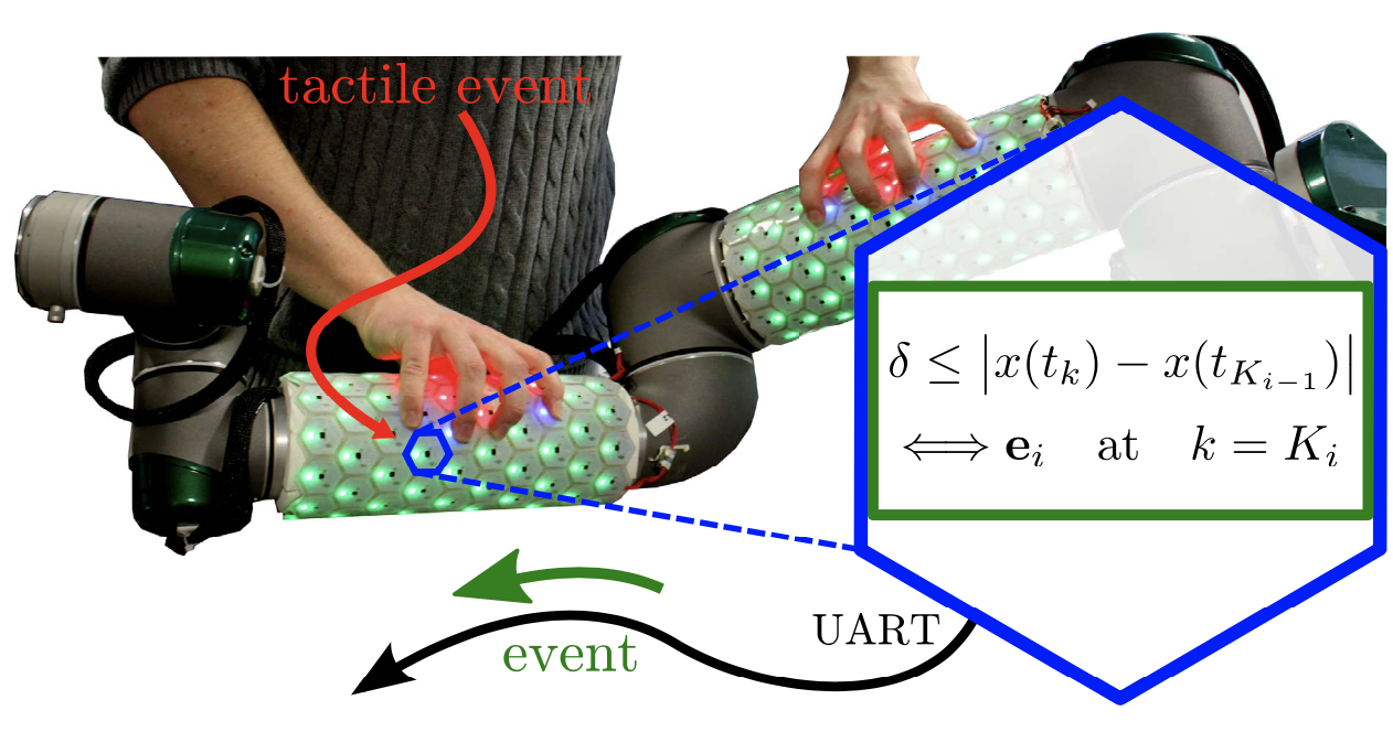 图9:事件驱动型触觉皮肤。仅当产生触觉事件时,传感信号才会转发至接口盒