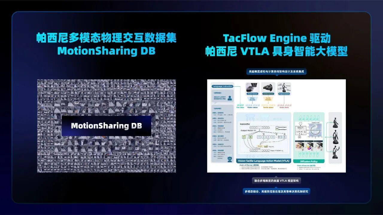 从更长远来看,一些头部企业也已经不满足于只做硬件供应商,而是要构建触觉大模型生态,像戴盟、帕西尼感知科技都已经推出了相关的 VTLA 模型成果。