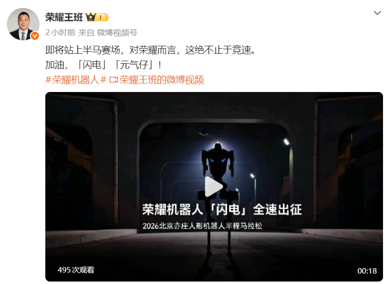 公开资料显示,荣耀此次共有两款人形机器人参赛,大尺寸机器人“闪电”身高169cm,具备自主感知导航能力,搭载自研高动态运动系统,具备高速奔跑与强地形通过适应能力;小尺寸机器人“元气仔”身高136.9cm,具备与人交互技能,具备多模态情景感知理解能力,支持舞蹈展演,未来将应用于荣耀门店智慧零售、科技生活体验空间等场景。